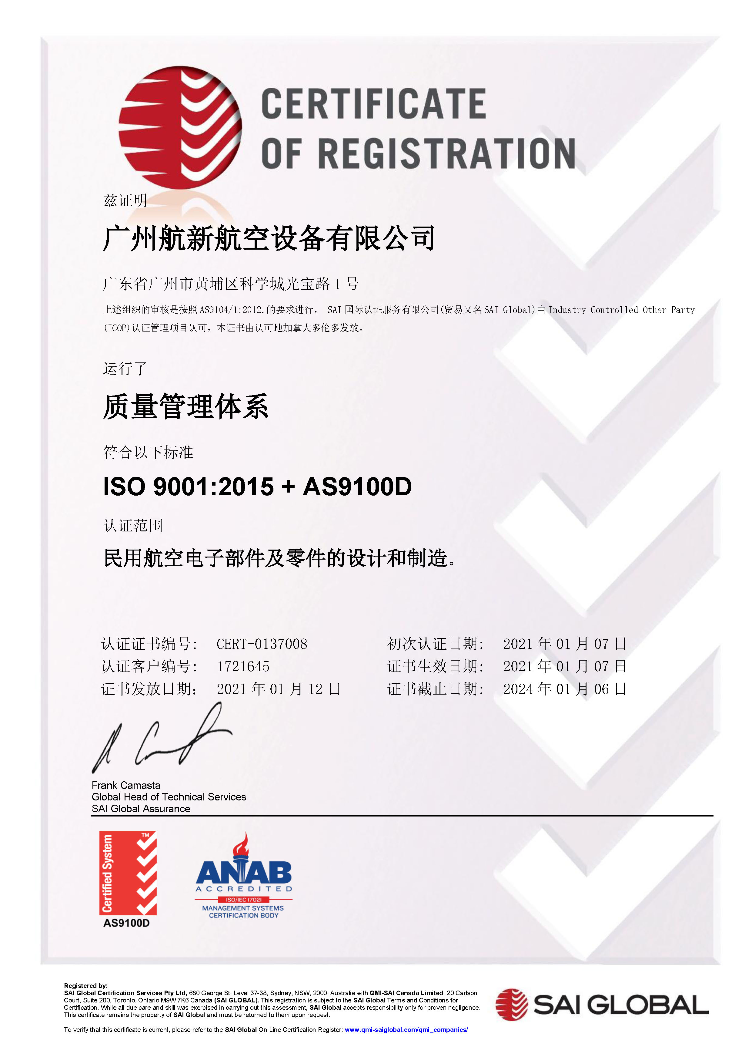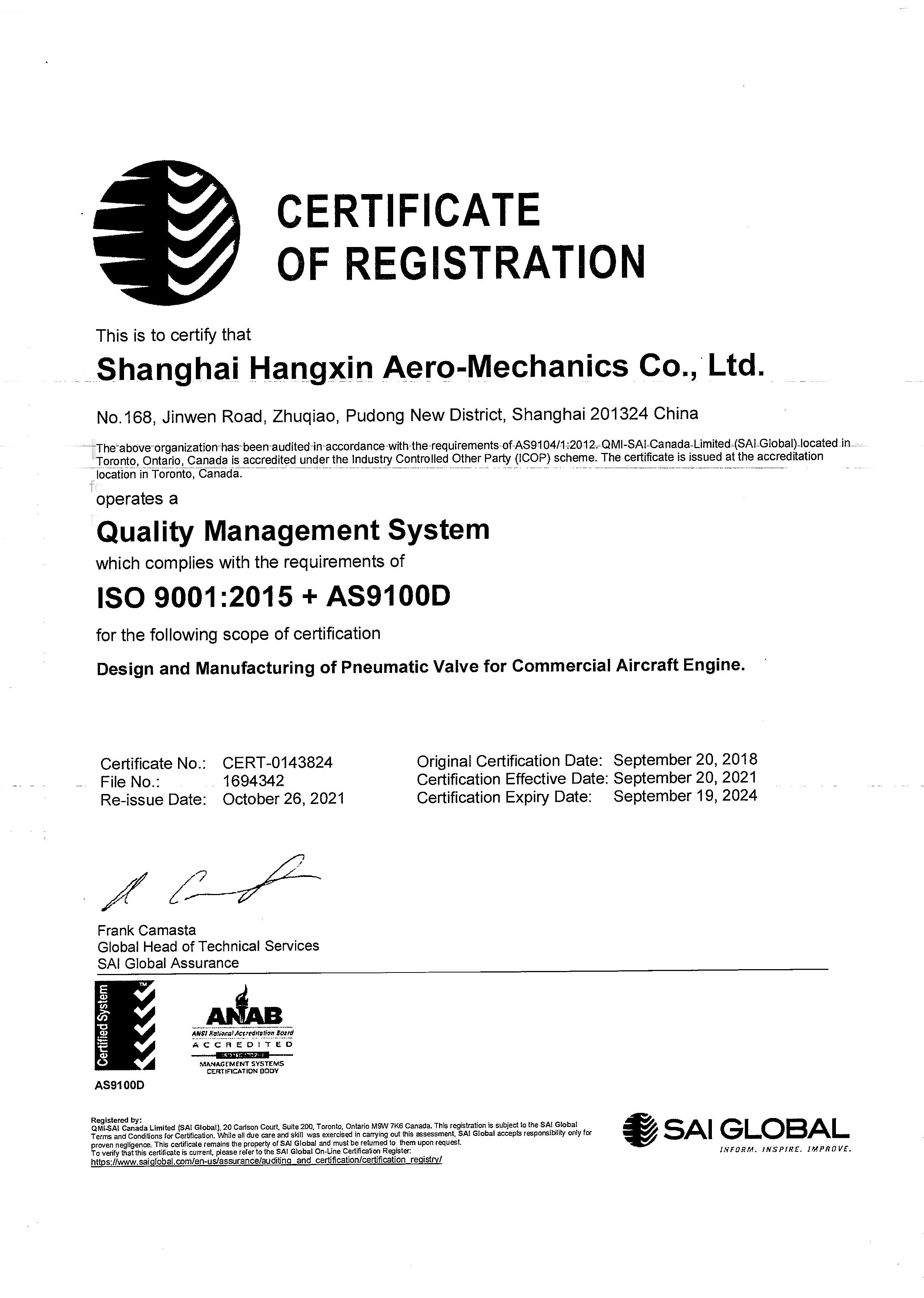 AS9100D资质认证(JDB电子官网设备)...