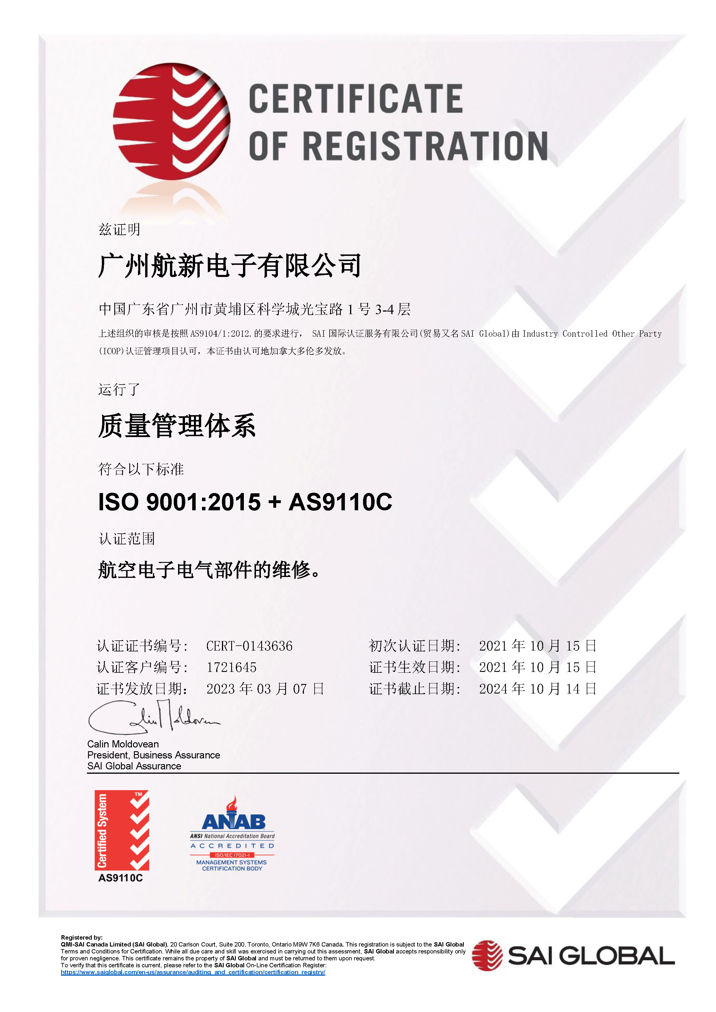 AS9110C资质认证(JDB电子官网电子)...